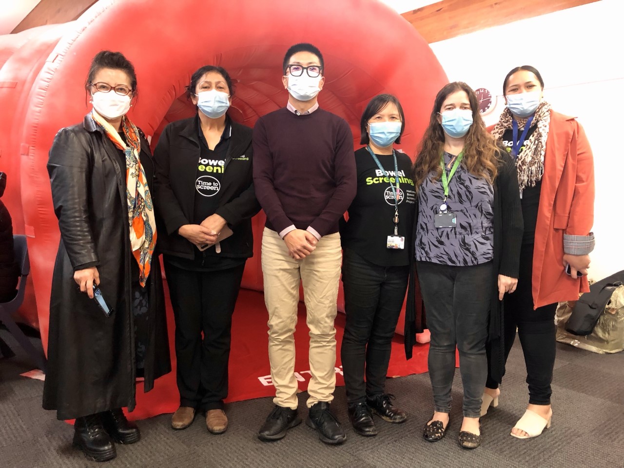 On Thursday 28 July 2022, we hold Community Health Talk – Bowel Cancer Screening in Te Tuhi, Pakuranga. In last two years people were focusing the Covid and almost forgot the bowel cancer which is the second highest cause of cancer death in New Zealand. Many people, especially new immigrants still do not know the health support information due to language barrier. Vinson Chao Yu worked with the Bowel Cancer Screen Team: Mere & Rowena from CMDHB; June & Hannah from WDHB came to do the presentation. The team also set up Bella which is a blow up of the bowel that you can walk through and you can experience how polyp developed to cancer.